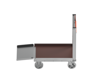 Der entwickelte Rollwagen mit Überfahrklappe zeichnet sich durch seine anpassungsfähige und ergonomische Konstruktion aus. Eine stirnseitige Überfahrklappe, arretierbar mit Rastbolzen in 90° Stellung, ermöglicht das einfache Überbrücken von Höhenunterschieden.