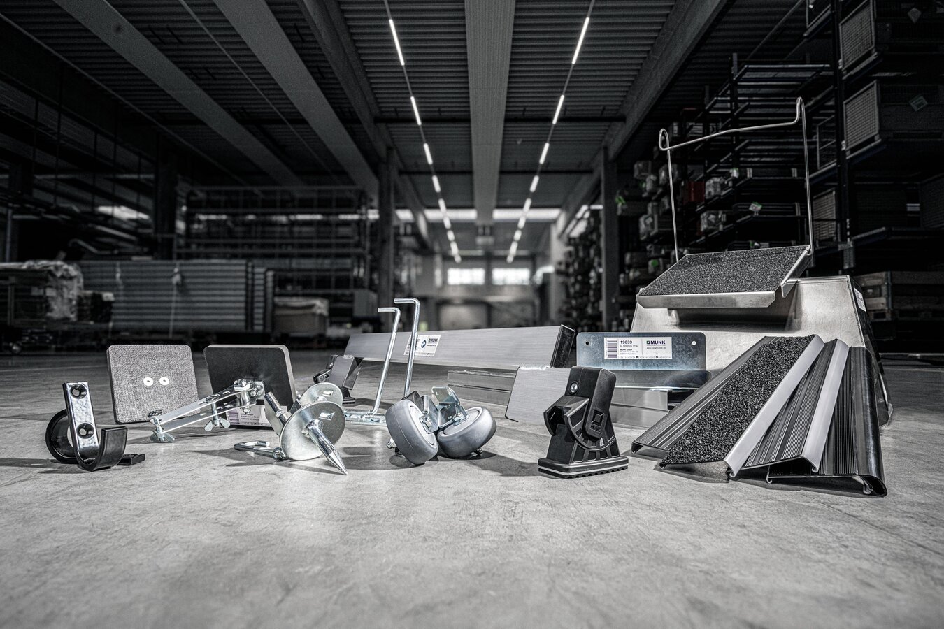 Auch das zeigt der Steigtechnik-Ratgeber 2026: Mit dem richtigen Zubehör lassen sich die Effizienz, Sicherheit und Flexibilität im Arbeitsalltag erhöhen.  Das gilt vor allem für Produkte wie den flexiblen Leiterschuh nivello, der für einen sicheren Stand auf jedem Untergrund sorgt, Leiterkopfsicherungen für einen festen Halt von Anfang an oder auch das Rollensortiment der Munk Günzburger Steigtechnik. Damit lassen sich Leitern, Tritte oder Podeste ergonomisch und kraftsparend transportieren. Für ein Plus an Sicherheit beim Auf- und Abstieg sorgen Handläufe, Geländer, Sicherungstüren oder Ausstiegsholme, das Gleiche gilt für die rutschhemmenden „clip-step“-Trittauflagen für Stufenleitern, die sich auch nachrüsten lassen.