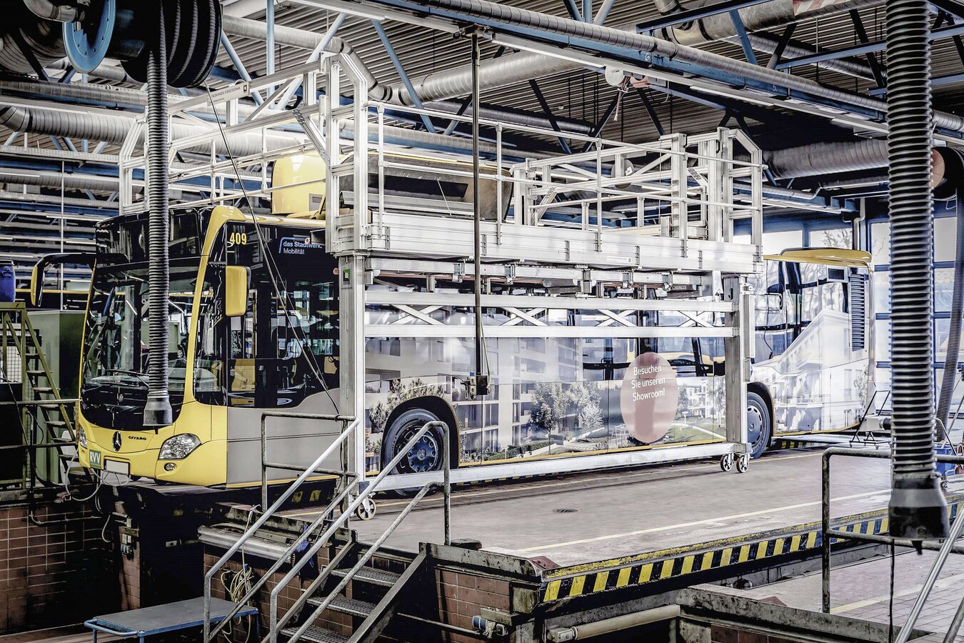 Mit den Lösungen aus Günzburg lassen sich die Prozesse optimieren und die Standzeiten deutlich reduzieren. Egal, ob öffentlicher Betreiber oder privater Busunternehmer: Dank der innovativen Ideen des Qualitätsherstellers sind sie bestens für die Zukunft aufgestellt, denn gerade auch Busse der neuesten Generation mit Elektro- oder Hybridantrieb lassen sich mit Steigtechniklösungen aus Günzburg besonders effizient warten.