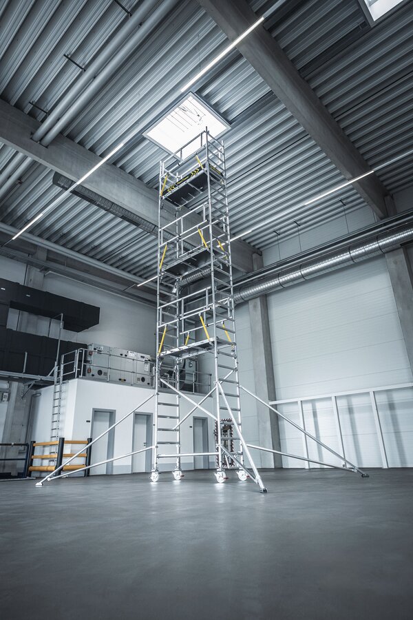 Ein echter Allrounder ist das Ein-Personen-Gerüst FlexxTower der Munk Günzburger Steigtechnik. Es kann werkzeuglos von nur einer Person auf- und abgebaut werden, bietet auf seiner Arbeitsplattform aber auch ausreichend Platz für zwei Personen und das bis zu einer Arbeitshöhe von über neun Metern.