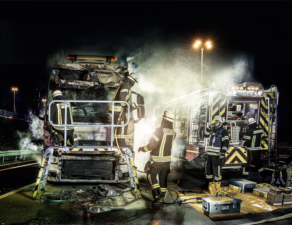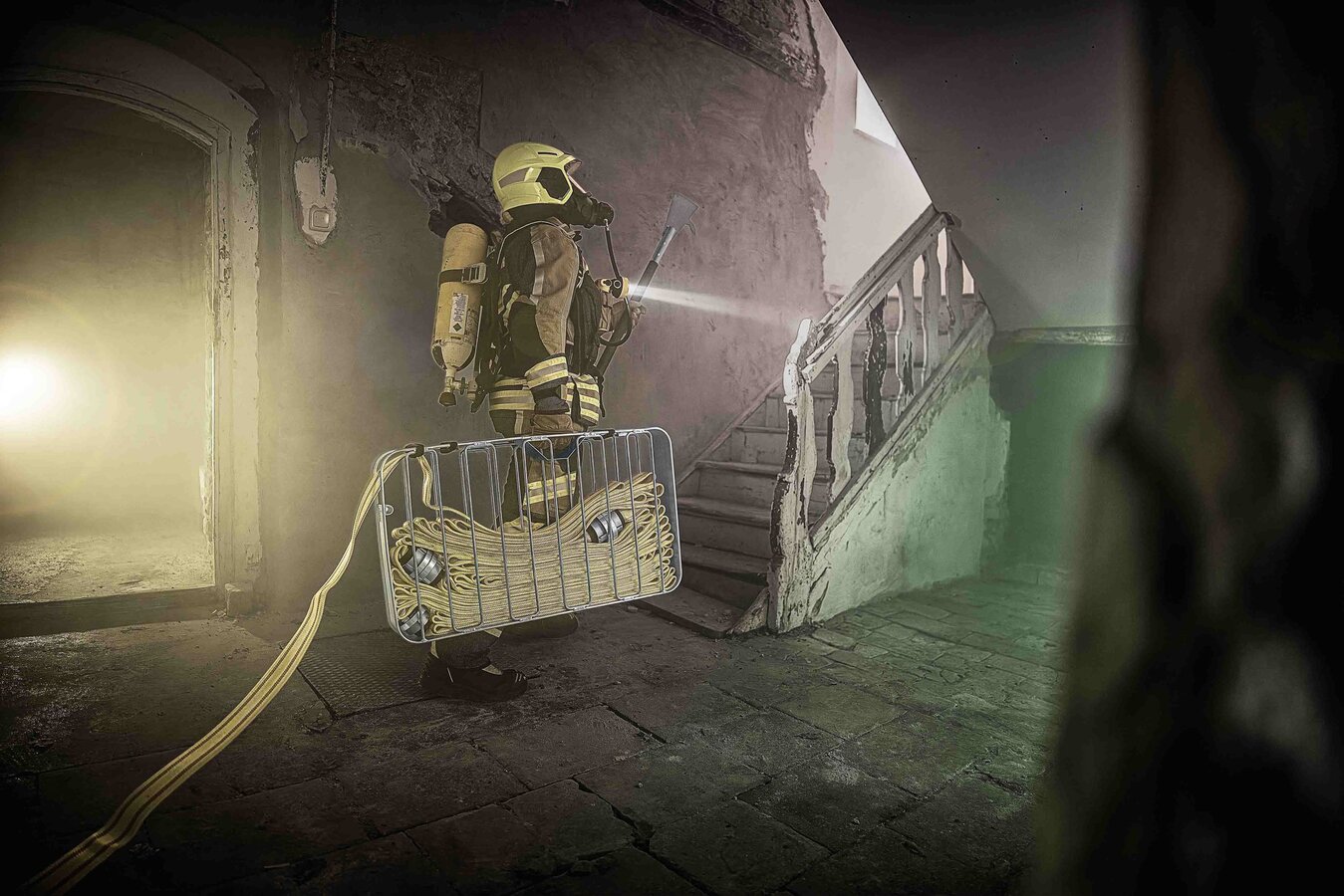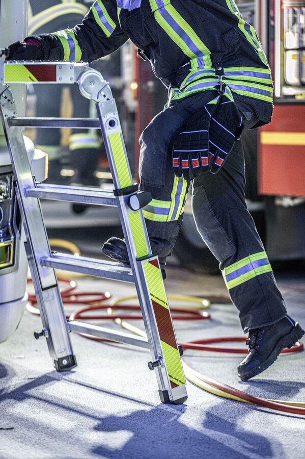 Die Munk Rettungstechnik geht in Hannover mit leuchtendem Beispiel voran und weitet zur Interschutz das marktführende Angebot aus der Glow-Reihe mit Nachleucht-Effekt aus: Für Feuerwehren und Rettungsdienste in den Städten entwickelte das Unternehmen einen speziellen Nachrüstsatz für Steck- und dreiteilige Schiebeleitern. „Damit können Feuerwehren ihr bestehendes Equipment nachträglich an der Seite bekleben. Das vermeidet Unfälle, wenn Einsatzkräfte in der Dämmerung oder im Dunkeln Fuß- und Radwege nutzen oder queren müssen, und macht die Einsätze noch sicherer“, sagt Alexander Werdich, ebenfalls Inhaber und Geschäftsführer der Munk Group.