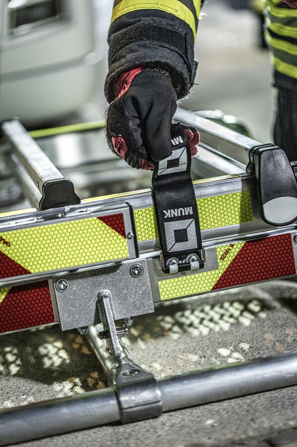 Ebenfalls neu im Programm der Munk Rettungstechnik ist die multifunktionale Rettungstragenlagerung, die Einsatzkräften nicht nur bei Großschadenslagen einen Mehrwert bietet, sondern auch im Sanitäts- und Rettungsdienst. Die Neuheit ist dank des geringen Gewichts und der kompakten Maße leicht zu transportieren und dann schnell aufgebaut. Die Rettungstragenlagerung ist so konzipiert, dass Verletzte auch in Schocklagerung gelegt werden können. Sie wurde speziell für den Einsatz bei Feuerwehr, Rettungsdiensten, Katastrophenschutz, Hilfsorganisationen und Militär entwickelt. Besonders praktisch: Die Rettungstragenlagerung kann auch als Tisch, Anlegeleiter oder Bank verwendet werden.
