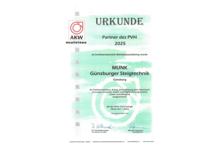 - MUNK erhält als einziges Unternehmen der Steigtechnikbranche diese Auszeichnung.