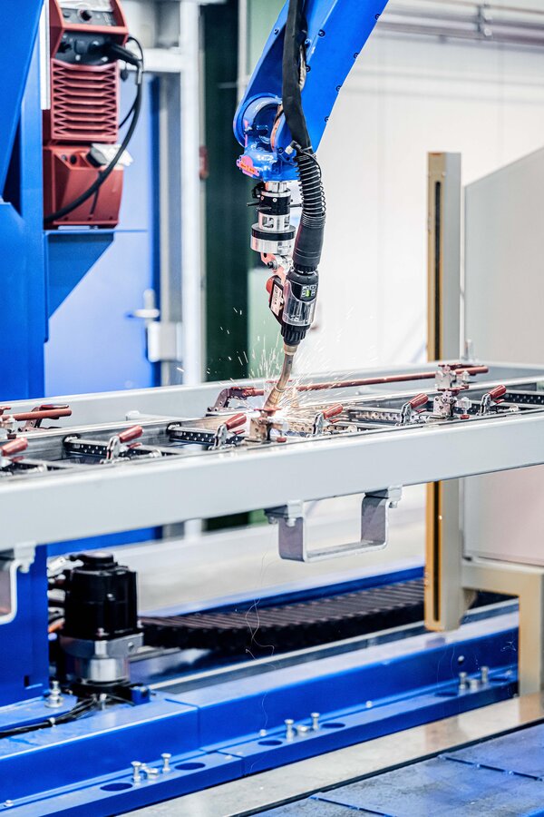Ferdinand Munk and his team had the foresight to install additional welding booths in the newly occupied welding hall, so that the welding shop now has 20 per cent more manual welding workstations with needs-based welding room extraction and energy-efficient hot air recirculation. The welding booths can be individually and ergonomically designed by the welder according to his work processes and are equipped with individually adjustable LED lighting. The highlight of the new welding shop is a new combination welding robot, which doubles the Munk Group's previous capacity for robot-controlled welding. The new robot can not only weld aluminium, but also steel.
